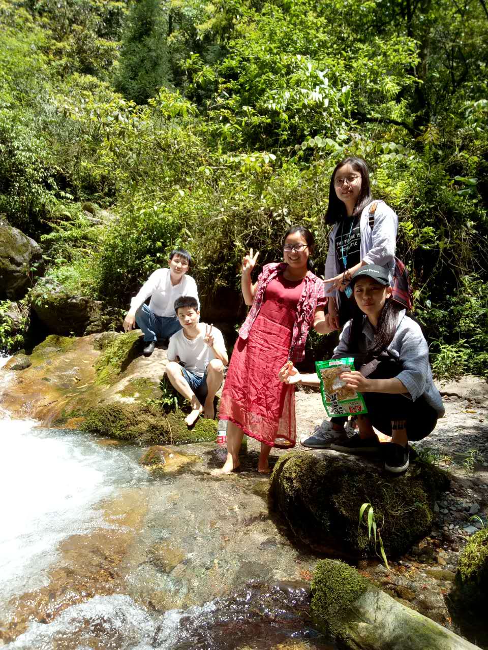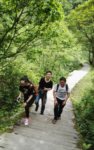 伴著明媚的陽(yáng)光我們開啟了登山之旅,1700米的高度并沒有讓我們卻步,登山路上雖是汗流浹背,但卻能夠靜靜欣賞四周的美景,品味自然志趣。一路上綠意盎然,遠(yuǎn)處高山層疊,近處流水潺潺,隨著高度的增加,壯觀的瀑布映入眼簾,陽(yáng)光照耀下,瀑布像鍍上了一層金色光環(huán),美不勝收。汗水打濕了衣服和頭發(fā),腳步也越發(fā)沉重,但方法人沒有一個(gè)人放棄,大家自發(fā)地為自己、為對(duì)方加油打氣,再短暫休息后又卯足了勁繼續(xù)前進(jìn)。