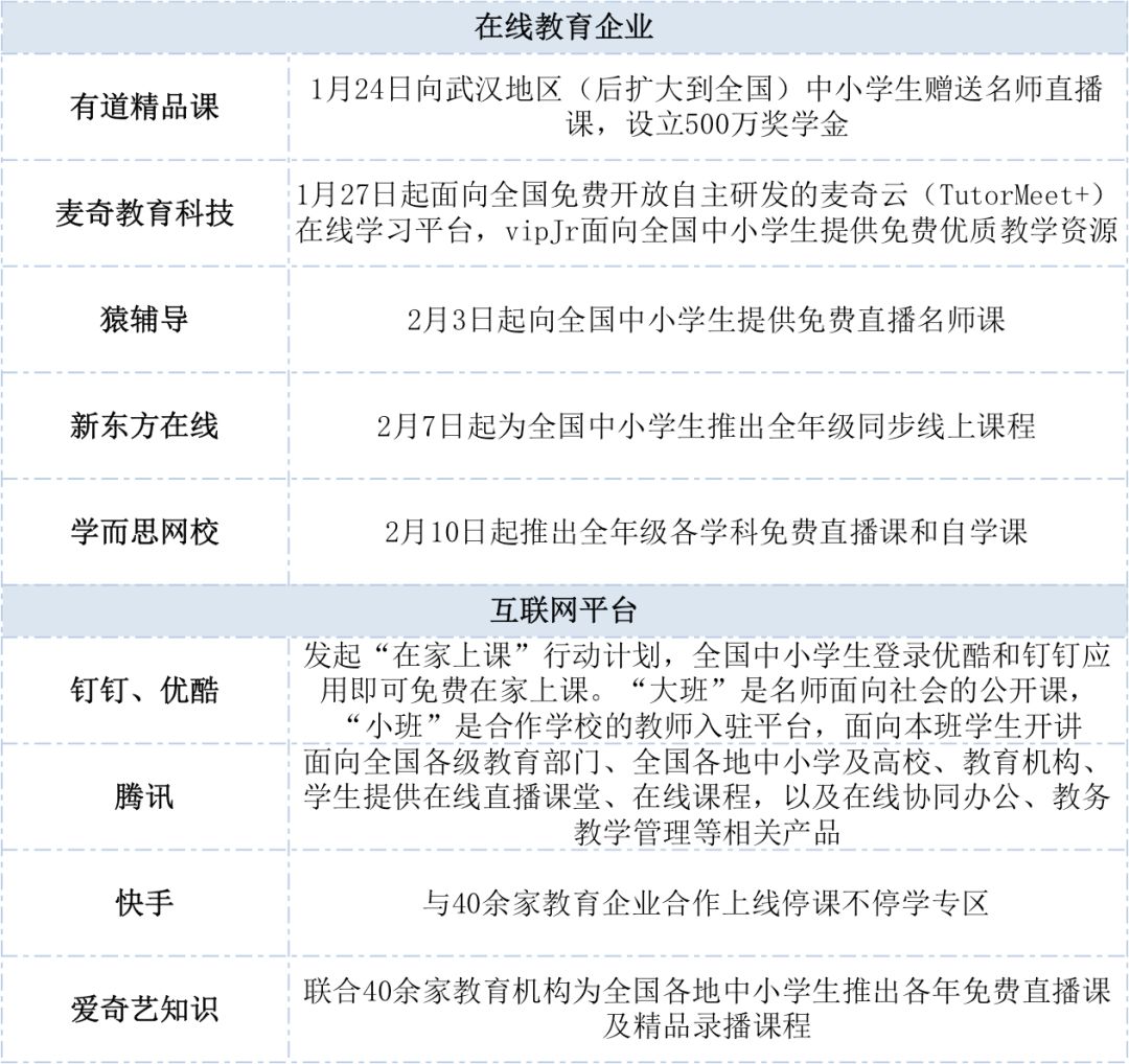 與學校和線下培訓機構急于在線尋求解決方案相對應,現(xiàn)有在線教育相關企業(yè)迎來了一個高光時刻——負責機構集體推出免費課程,一些互聯(lián)網(wǎng)平臺宣布開放合作,幫助學校和機構建設空中教室。這些動作很快就把相關企業(yè)推到了流量的巔峰。